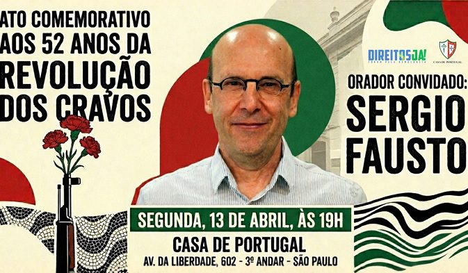 A iniciativa é da Casa de Portugal em parceria com a organização Direitos Já! Fórum pela Democracia e terá como orador convidado Sérgio Fausto, cientista político, é diretor-executivo da Fundação FHC e codiretor do projeto Plataforma Democrática e da Coleção “O Estado da Democracia na América”. A Moderação será da também cientista política Maria Hermínia Tavares de Almeida, professora emérita do DCP/USP e ex-diretora do Instituto de Relações Internacionais da Universidade de São Paulo (IRI-USP).