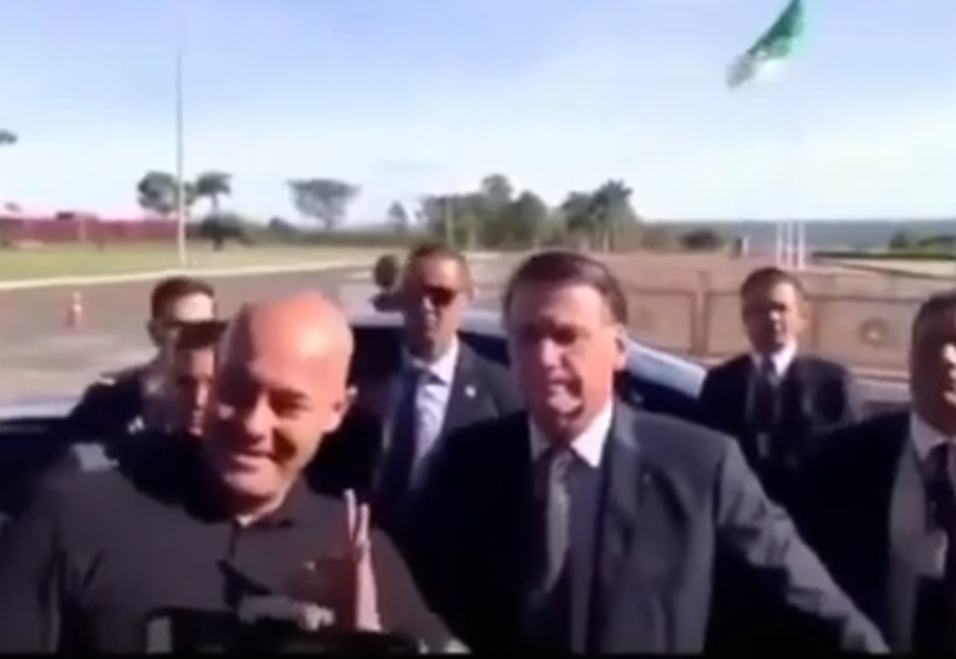 Começou a circular nesta sexta-feira (26) na internet um vídeo em que Jair Bolsonaro aparece cercado por alguns seguranças, quando um dos seus seguidores, ao aproximar-se para tirar fotos, fez o mesmo gesto nazi-racista com que Felipe Martins, assessor especial da Presidência, afrontou o Senado da República na quarta-feira (24).