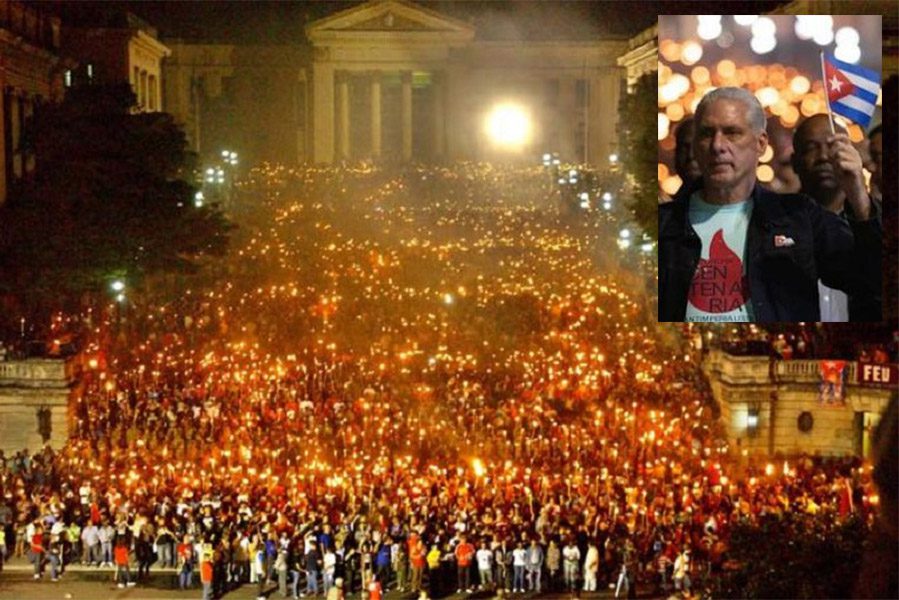 O presidente de Cuba, Miguel Díaz-Canel, encabeçou nesta quarta-feira (28) à noite na Escadaria da Universidade de Havana a tradicional “Marcha das Tochas”, realizada em homenagem ao Herói Nacional José Martí, a 173 anos de seu natalício.