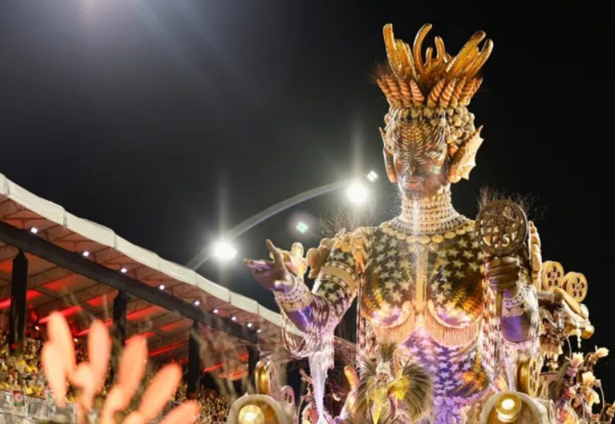 A Império de Casa Verde abriu a noite com um desfile sobre as joias afro-brasileiras e a tradição dos balangandãs, conectando a ourivesaria africana ao período da escravidão e às lutas por liberdade. Ao celebrar o empoderamento feminino negro, a escola apostou em fantasias ricas e alegorias douradas, destacando o papel das mulheres negras como guardiãs de cultura e resistência.