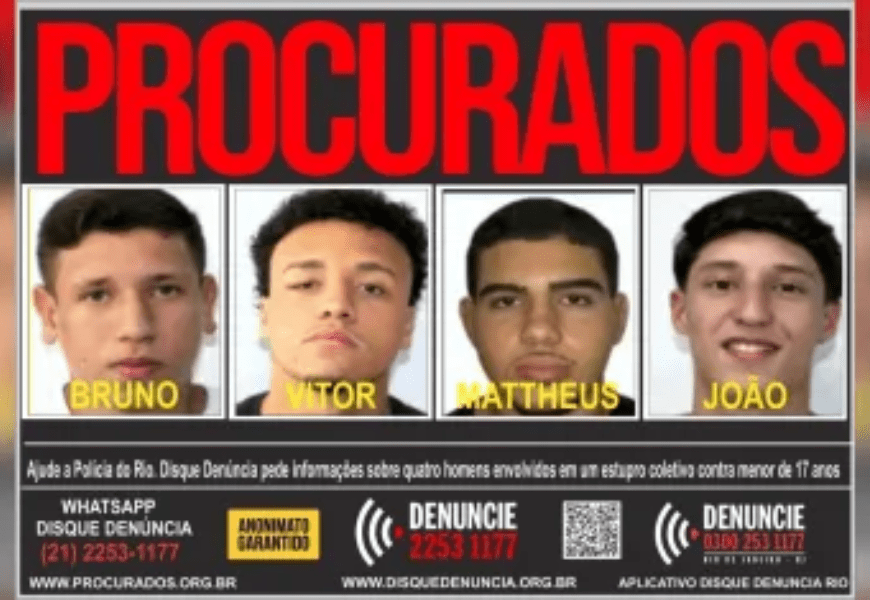 Cartaz de procurado com os acusados de estupro coletivo de jovem em Copacabana - Foto: Reprodução