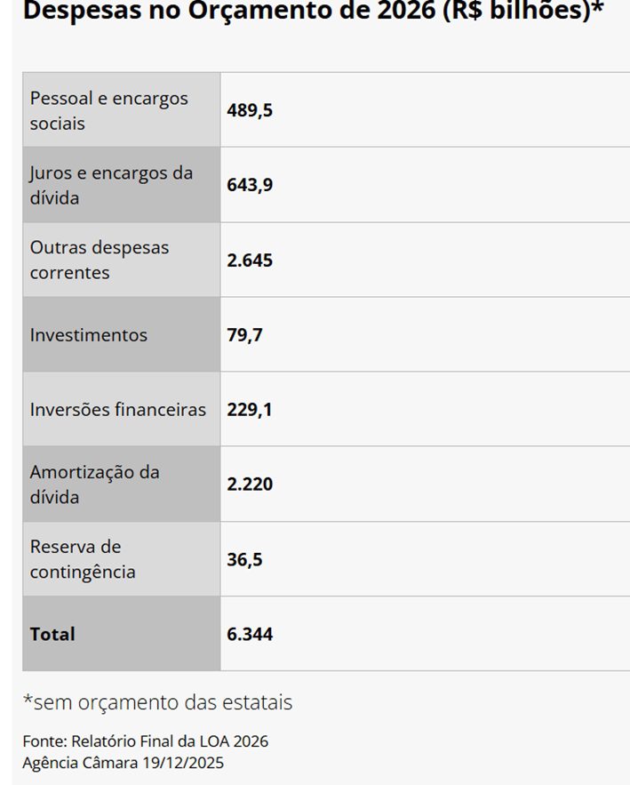 Outras projeções aprovadas na sexta-feira (19) pelo Projeto de Lei do Congresso Nacional (PLN 15/25) proposta de Lei Orçamentária Anual (LOA) de 2026.