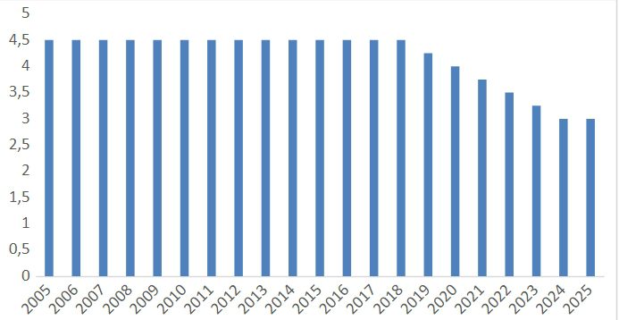 Meta oficial de inflação (% ao ano) – 2005 a 2025