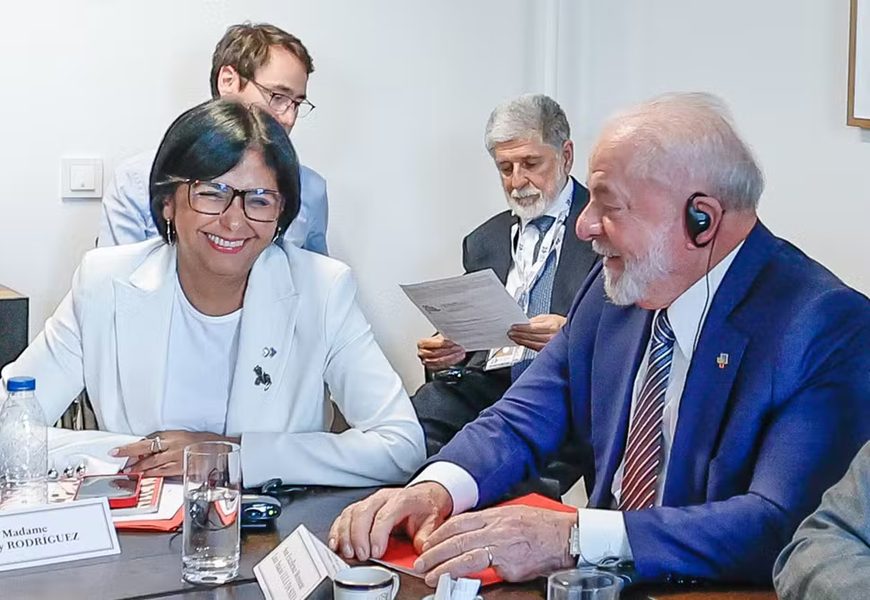 O presidente Lula conversou por telefone, na manhã de sábado (3), com a presidente interina da Venezuela, Delcy Rodríguez.