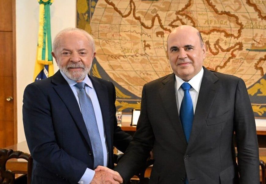 O presidente Lula recebeu nesta quinta-feira (5), em Brasília, o primeiro-ministro da Rússia, Mikhail Mishustin. Eles discutiram medidas para a ampliação dos acordos entre os dois países com vistas a aumentar o volume de comércio bilateral. De acordo com a Embaixada da Rússia no Brasil, tais medidas serão benéficas para atrair investimentos e apoiar projetos em diferentes áreas. Dentre elas, ”energia, indústria, agricultura, alta tecnologia e exploração espacial”.