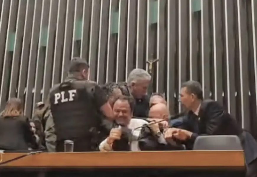 Por determinação do presidente Hugo Motta, a Polícia Legislativa retirou com violência da Mesa da Câmara, o deputado Glauber Braga, que protestava contra a cassação de seu mandato. Mais grave do que isso, desligou o sinal da TV Câmara e expulsou, também com violência, os jornalistas do plenário.