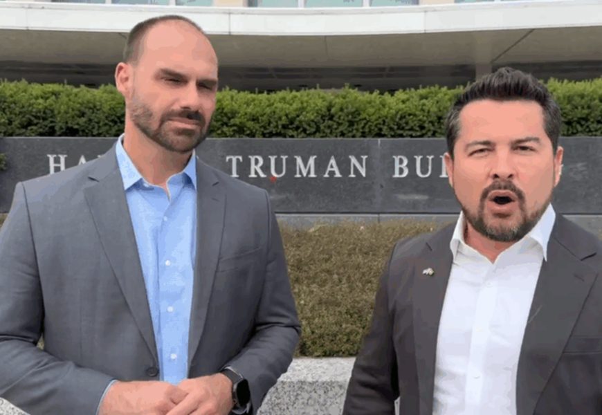 Jornalista relata que dupla de traidores tentou atrapalhar reunião entre chanceler Mauro Vieira e Marco Rubio no departamento de Estado Numa tentativa frustrada em Washington, o deputado federal licenciado e autoexilado Eduardo Bolsonaro (PL-SP) e o empresário Paulo Figueiredo — neto do último presidente da ditadura militar — foram impedidos de participar de reunião no […]