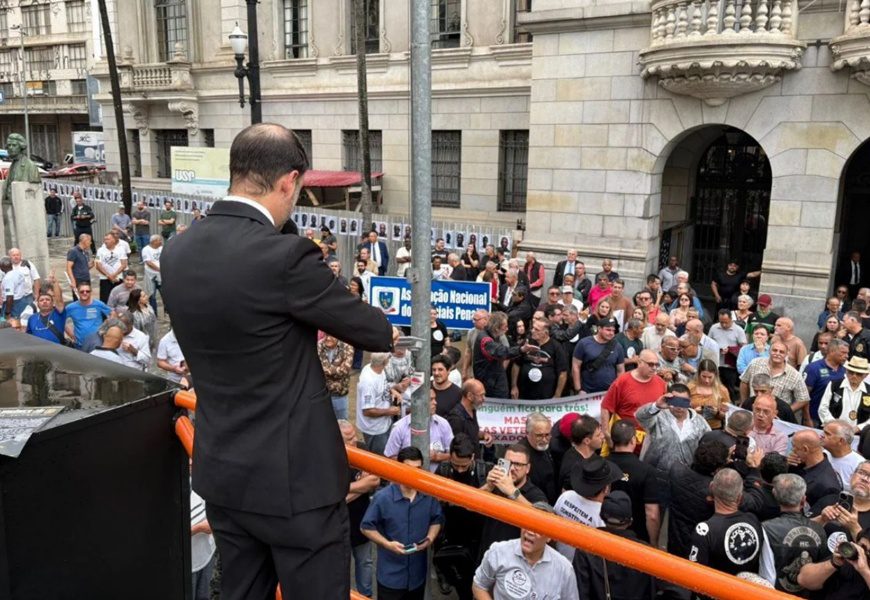 O ato, que contou com representantes de 23 entidades de policiais, cobrou do governador Tarcísio de Freitas e do Secretário da Segurança Pública de São Paulo licenciado, Guilherme Derrite, promessas de campanha não cumpridas.