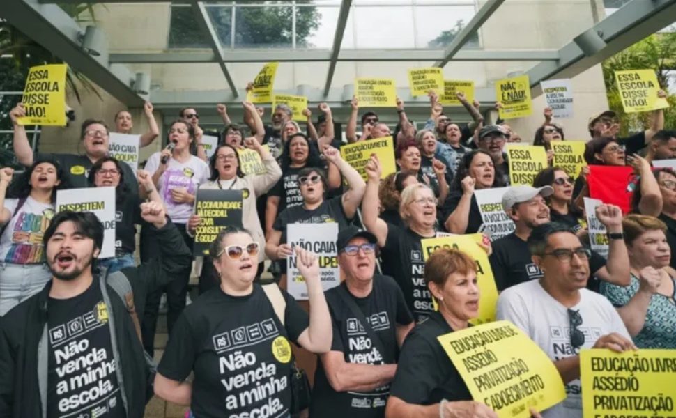 A associação denuncia que com o modelo de gestão de Ratinho Júnior, aprovado em 2024, sem diálogo com educadores ou a população, além das 82 já escolas privatizadas, cerca de 150 estão sob ameaça: 50 podem ser submetidas a consultas sobre o modelo cívico-militar e 97 correm risco de privatização.