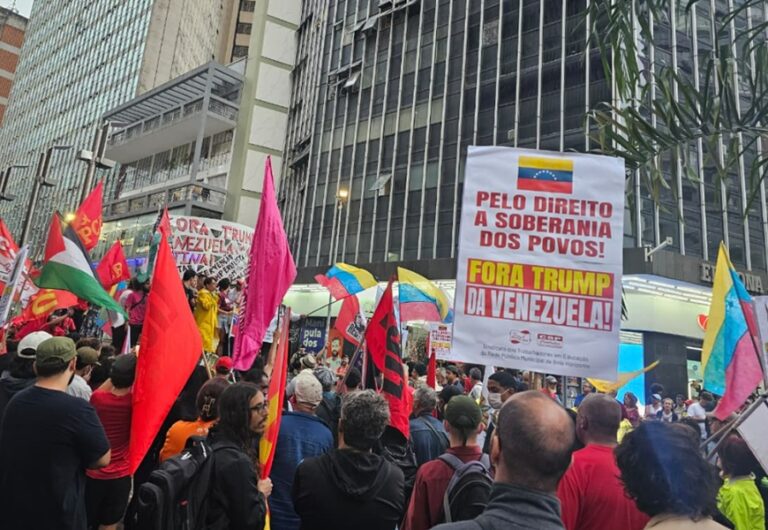 Em São Paulo, manifestantes se concentraram em frente ao Consulado dos Estados Unidos, com bandeiras, faixas e palavras de ordem contra os ataques de Trump. “O sequestro de um chefe de Estado da América do Sul da maneira como foi feito é um ataque sem precedentes à soberania. Não só da Venezuela, mas de toda a América Latina. No dia de hoje nos colocamos contra essa política imperialista”, afirmou Bianca Borges, presidente da União Nacional dos Estudantes (UNE).