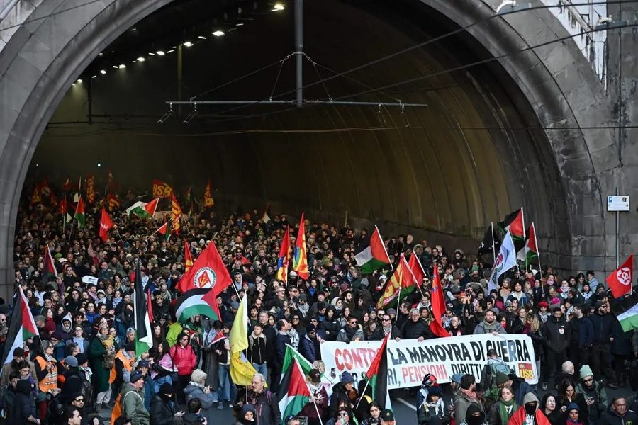 A Itália foi paralisada, nesta sexta-feira (28), por uma greve geral em todos os setores públicos e privados numa jornada de protesto contra o orçamento do Estado para o próximo ano, exigindo direitos trabalhistas e condenando o aumento dos gastos militares em detrimento dos programas sociais.