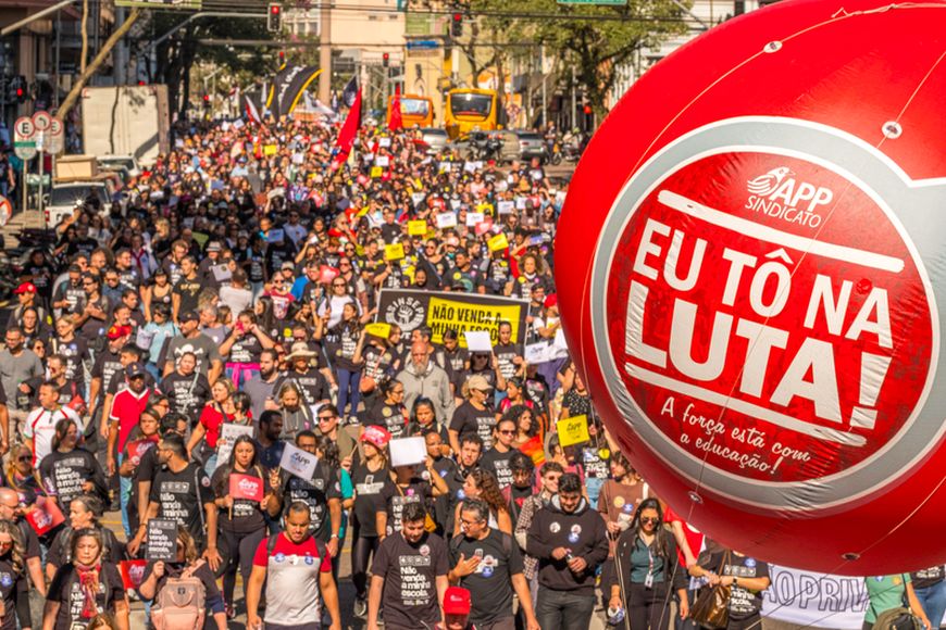 Greve no Paraná contra a privatização das escolas do governador Ratinho Jr. (Foto: Gibran Mendes/CUT Paraná)