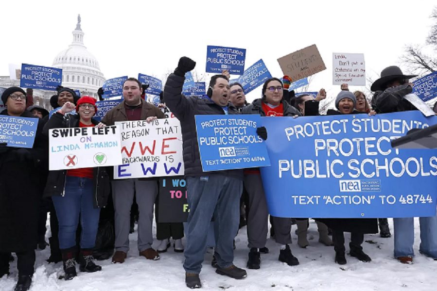 O plano de Trump é a terceirização da educação nos EUA, criando créditos fiscais através de vouchers escolares universais para escolas privadas e religiosas desviando fundos públicos que iriam para as escolas públicas para o setor privado e a criação de um novo programa de subsídios para escolas que se associarem a empresas privadas.