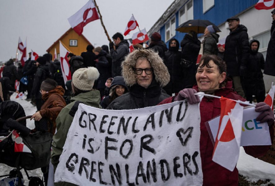 Groenlândia para os groenlandeses diz faixa em manifestação contra estupidez da ditadura trumpista (Marco Djurica - Reuters)